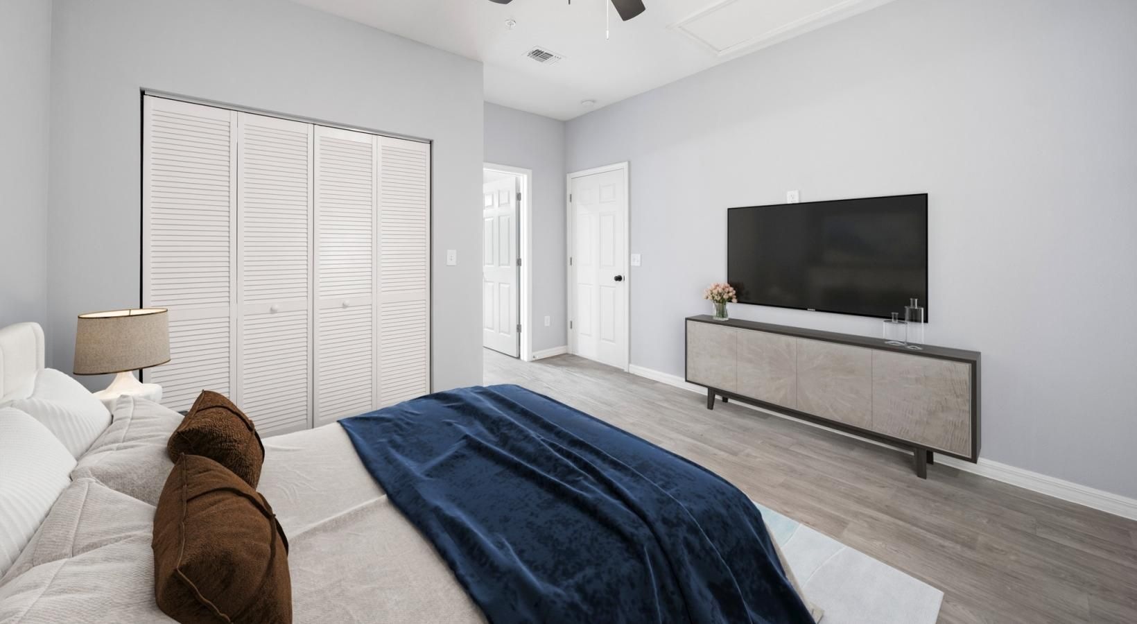• a room with a bed and a television