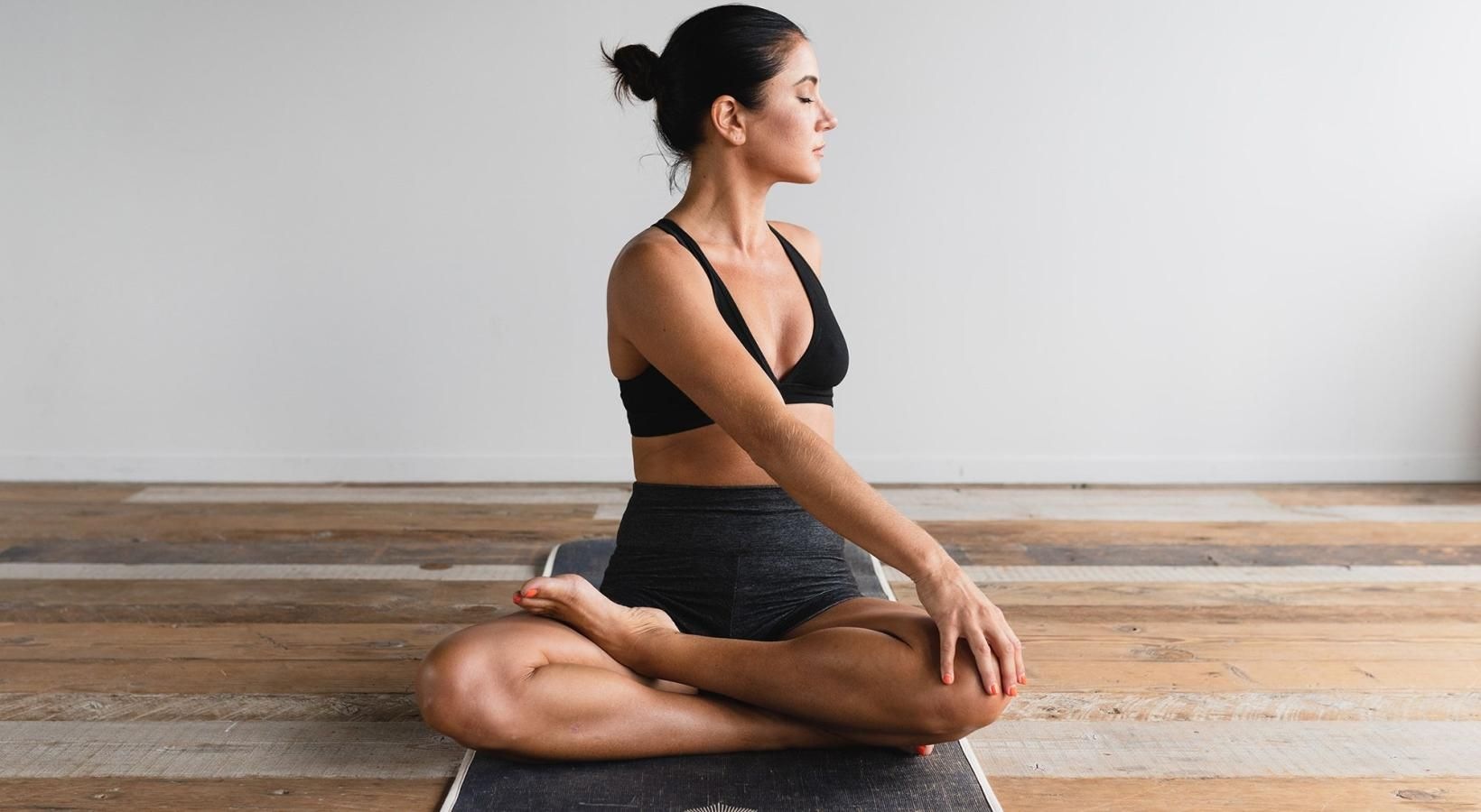 • woman stretching on a yoga mat