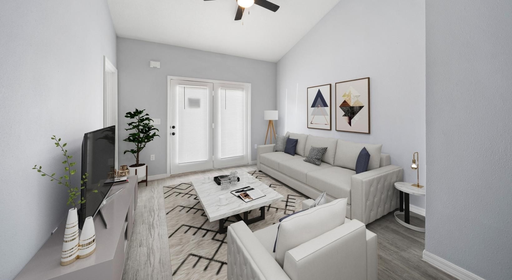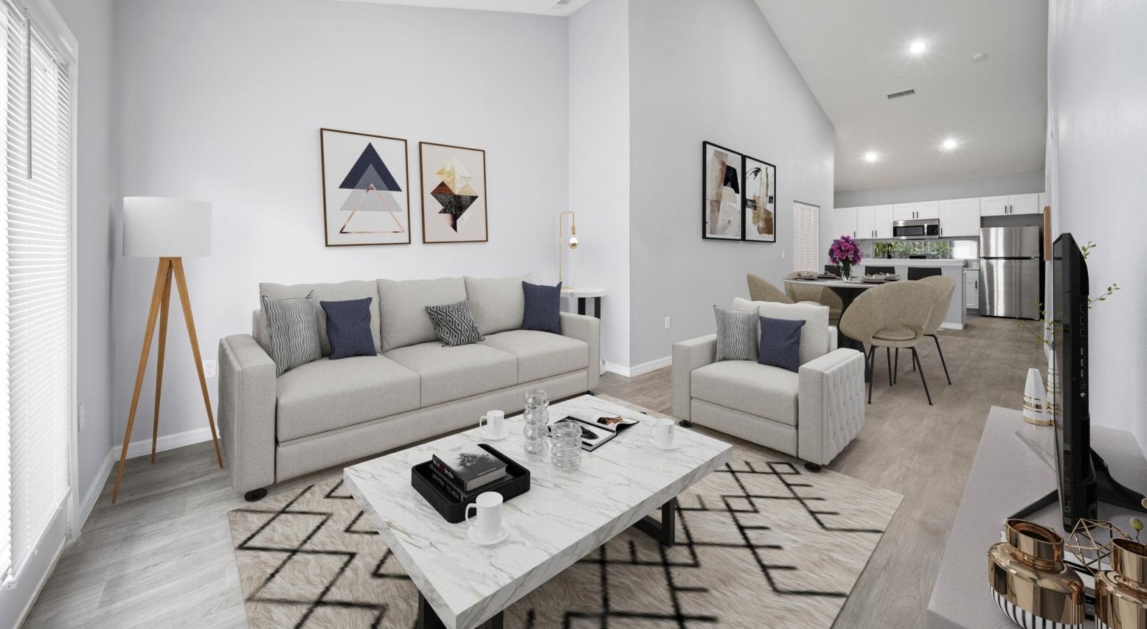 • a living room with a couch and a table