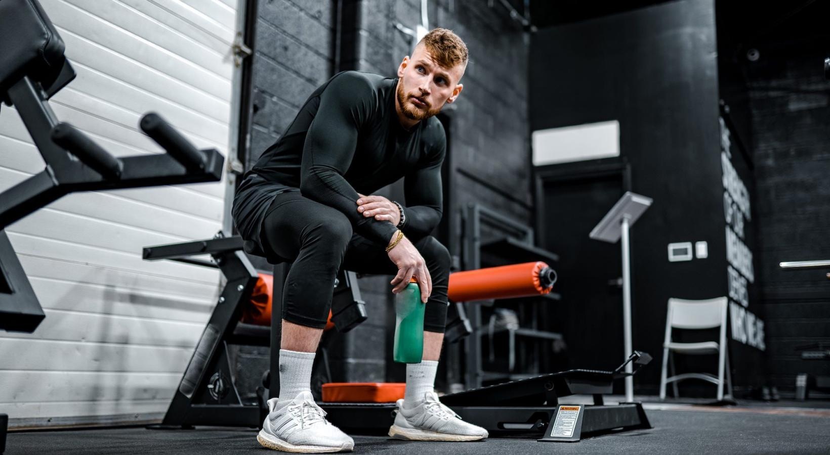 • a person sitting on a bench in a weight room